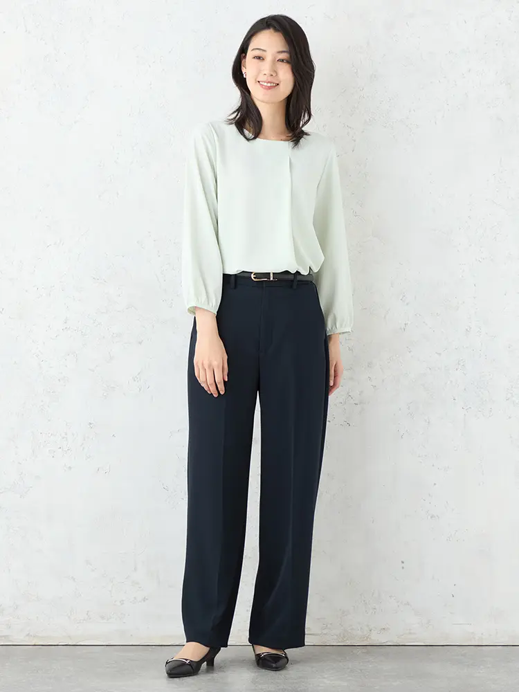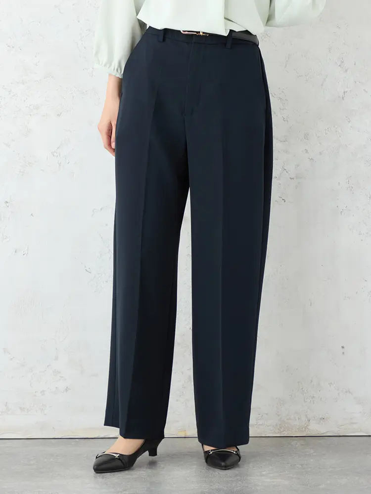 【ウォッシャブル】 ウィメンズ フルレングスパンツ ストレッチ SOFFICE ブラック 無地 通年【レディース】