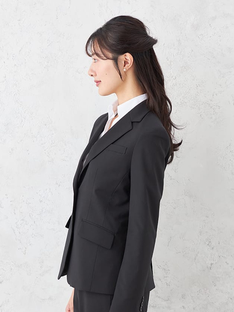 切り込みが1本のセンターベントデザインです。細身でスッキリとしたシルエットが特徴で、快適な着心地を提供します