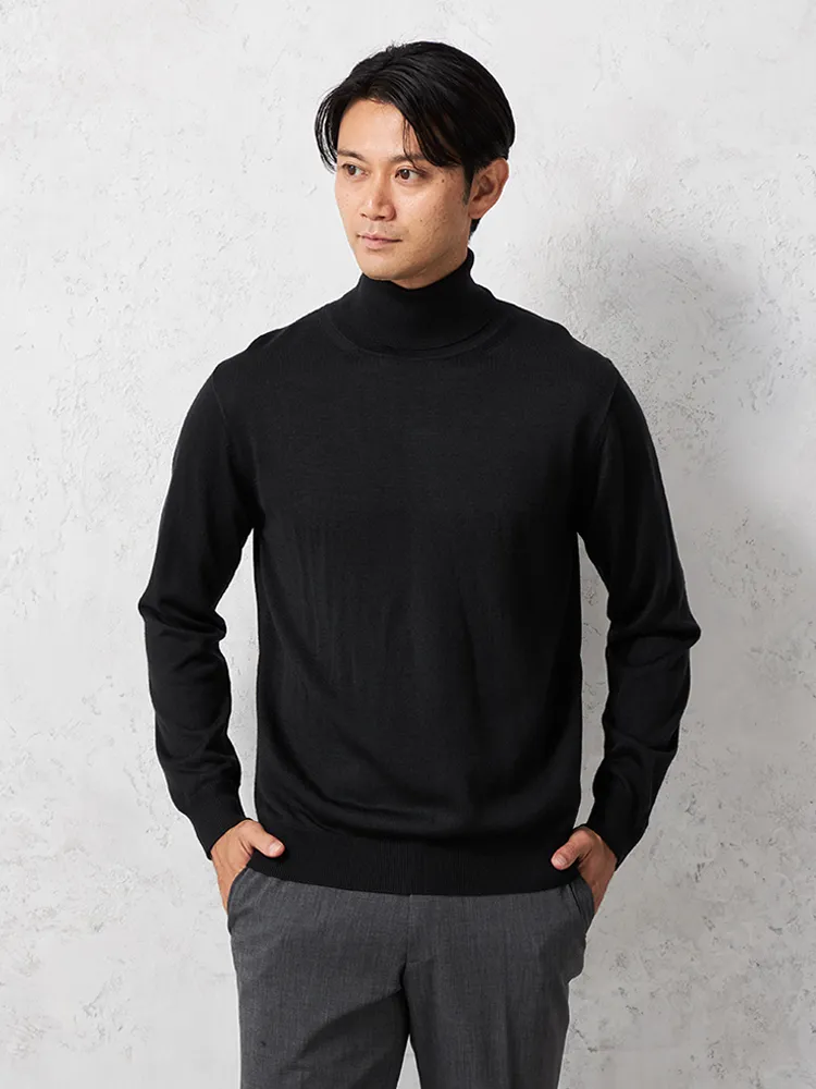 【ウォッシャブル】ニットタートルネックセーター放電抗ピリング無地天竺長袖リッケンバッカー秋冬