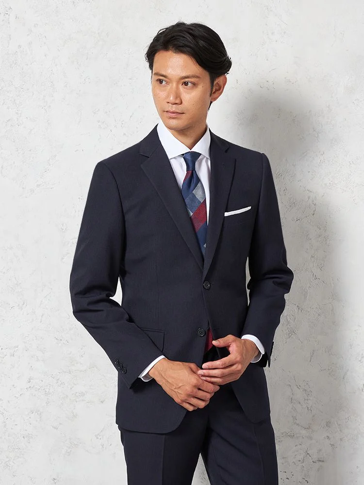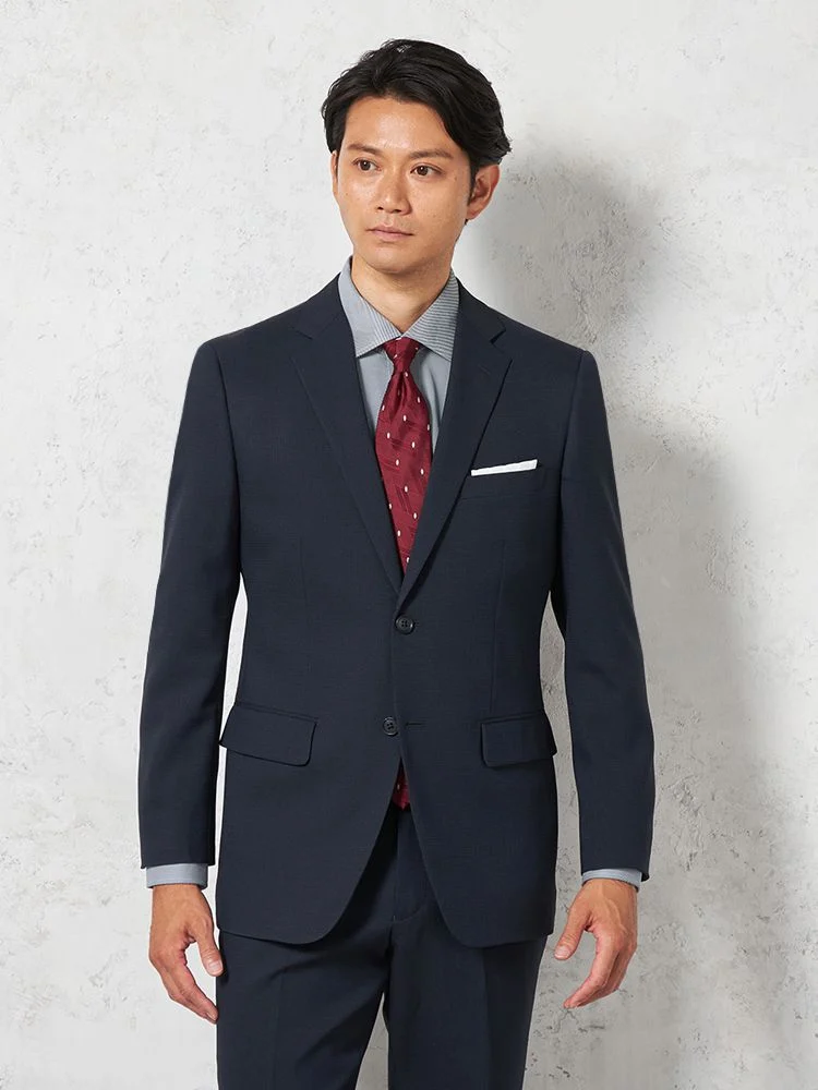 【即納】スーツ2つボタン【WEB限定】4WAYストレッチ織柄ネイビー通年