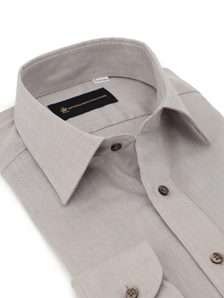 【ビバリーヒルズポロクラブ】 ブラウンへリンボン 長袖Yシャツ ワイド ヘリンボン 形態安定 通年