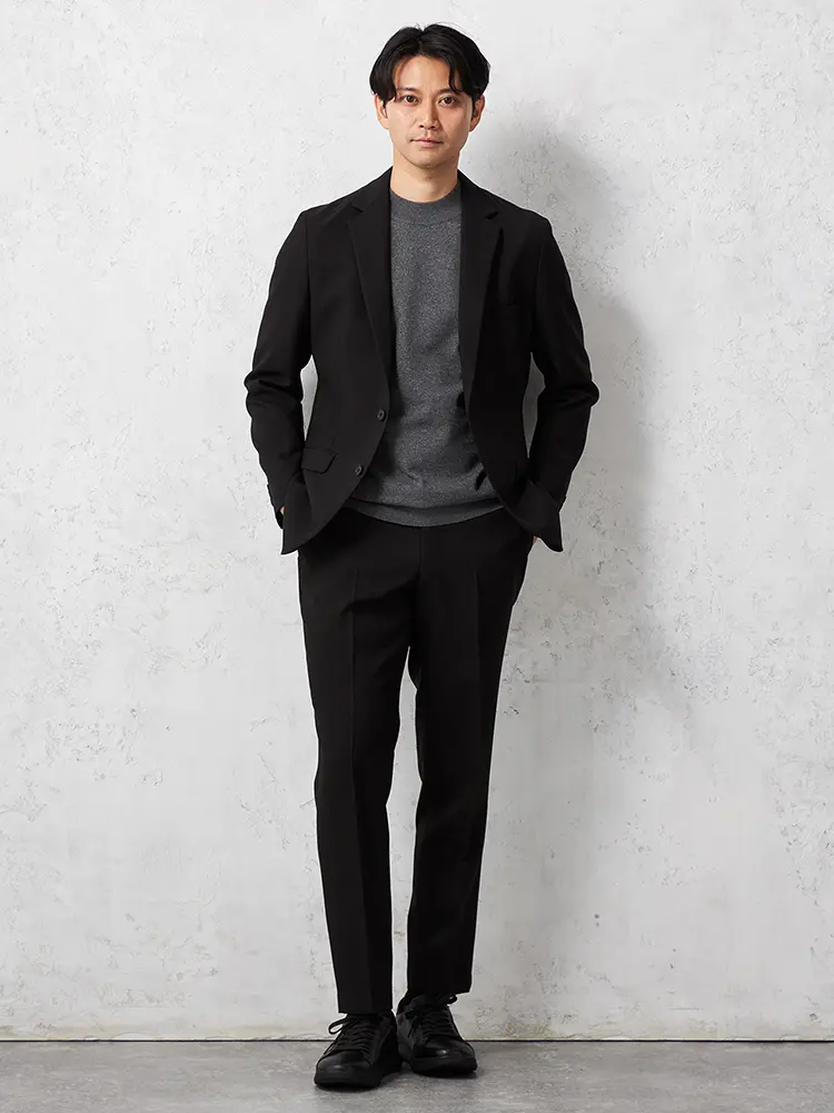 ストレッチやウォッシャブル機能もあり、オンオフ問わず、装いをシャープに引き締めたいシーンに最適な一着。