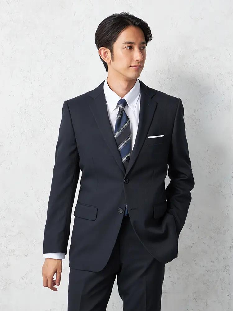 【即納】スーツ 2つボタン【WEB限定】上下ウォッシャブル ネイビー ストライプ