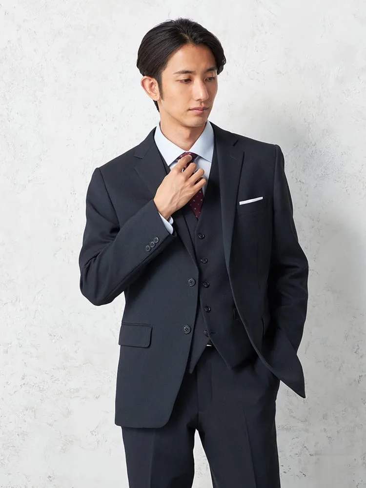 抜群のストレッチ性と嬉しいウォッシャブル機能付きのスーツは会議からテレワークまであらゆるシーンで活躍します。