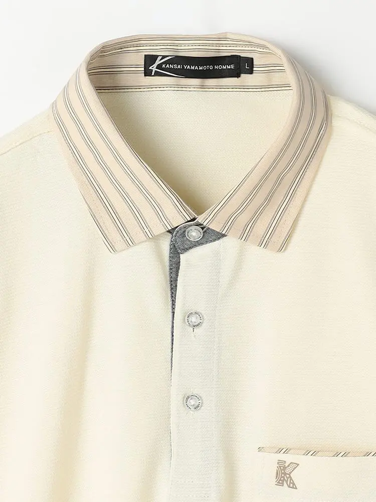 【カンサイ・ヤマモト】布帛衿ポロシャツ カジュアルインナー 秋冬(ホワイト)