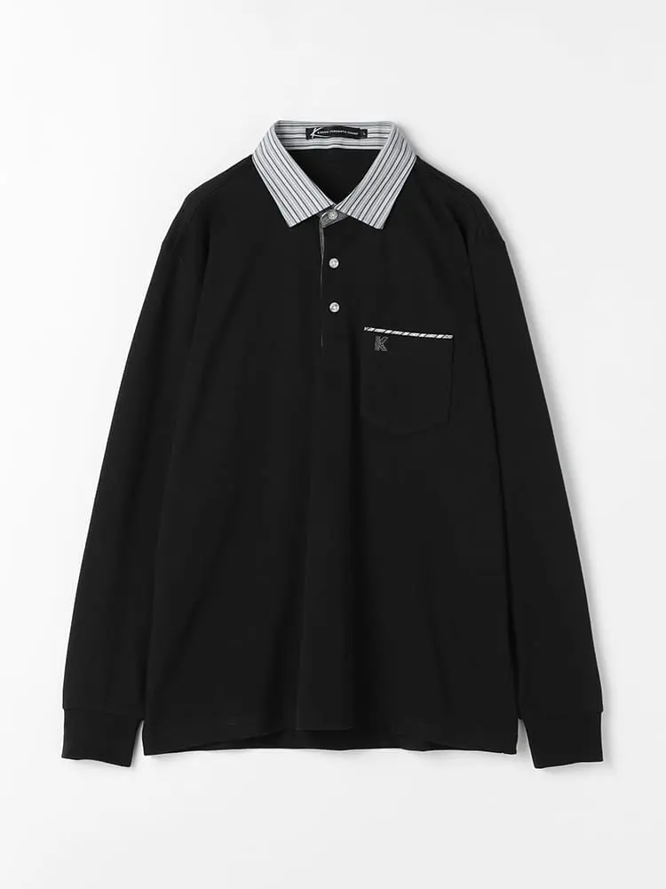 衿元や下前立ての異素材使いがポイントになったポロシャツ。