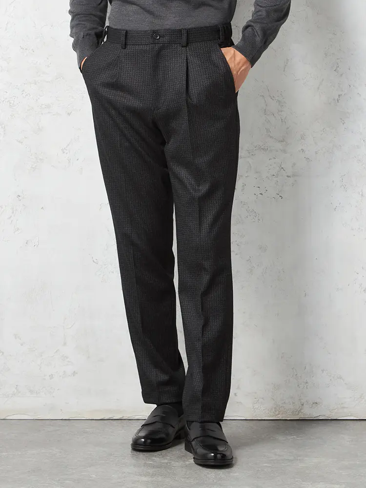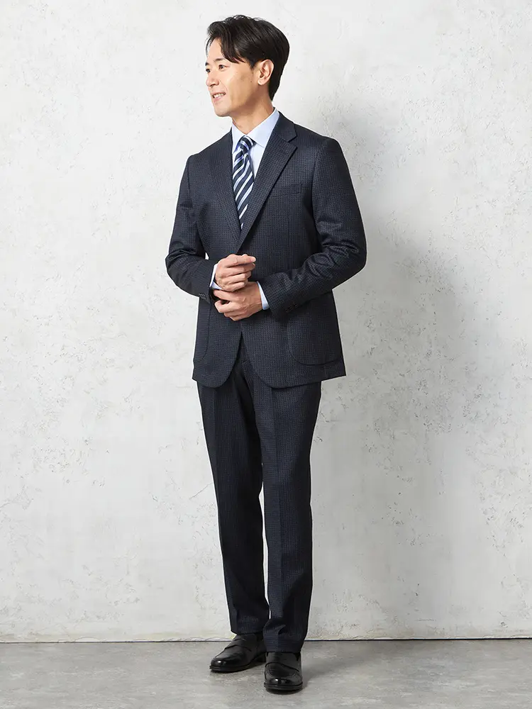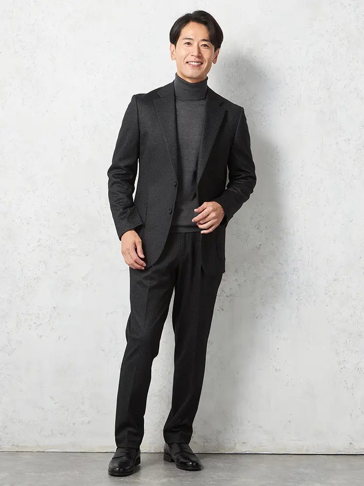 【リッケンバッカーブラック】 ウールジャージセットアップ パンツ 千鳥格子 上下ウォッシャブル ワンタック 秋冬(C.グレー)