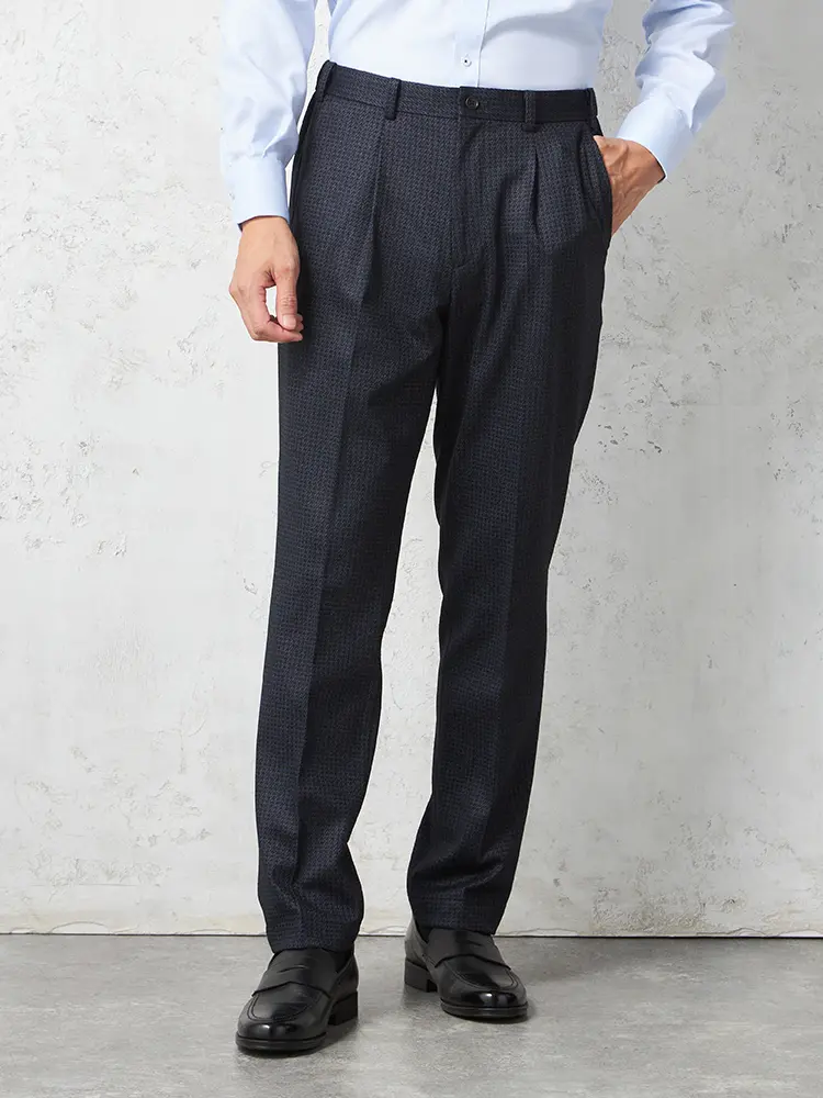 【ウール100%】パンツワンタックカノニコスラックス無地S&MBLUELABEL秋冬