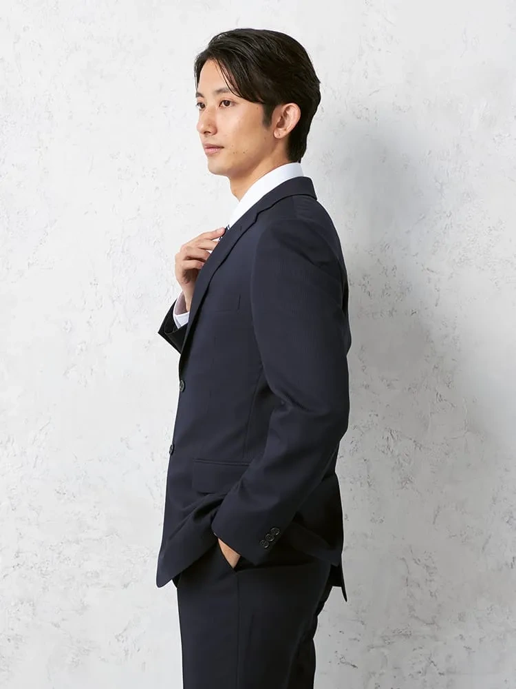 抜群のストレッチ性と嬉しいウォッシャブル機能付きのスーツは会議からテレワークまであらゆるシーンで活躍します。