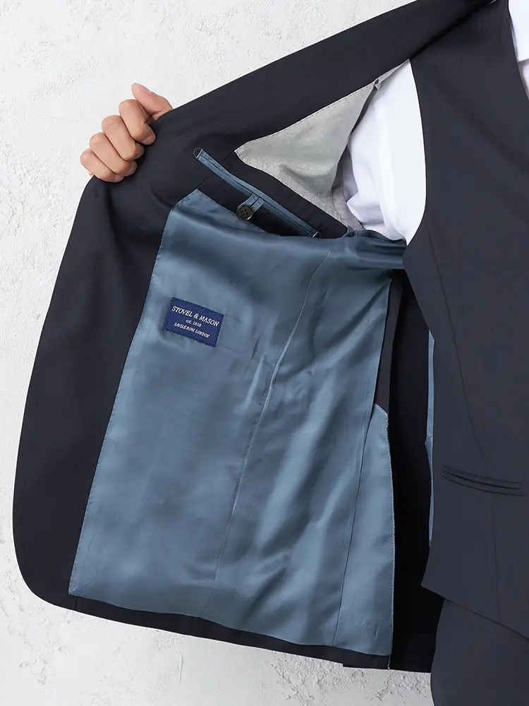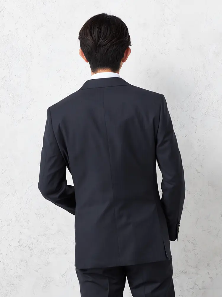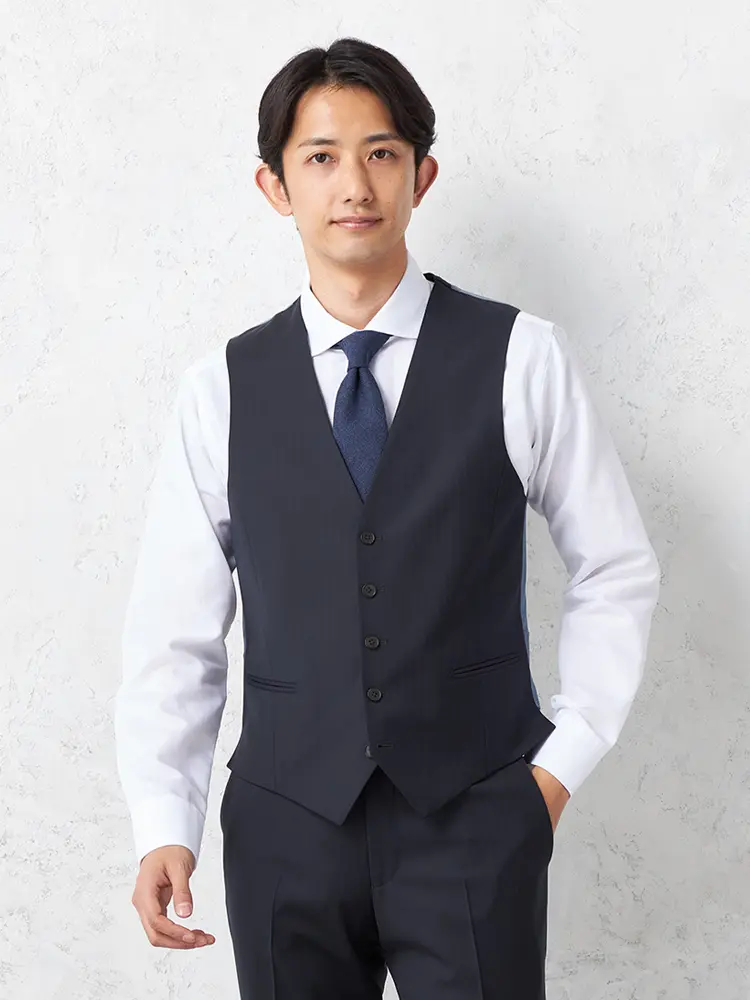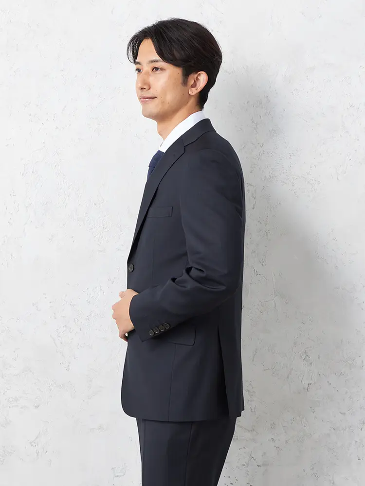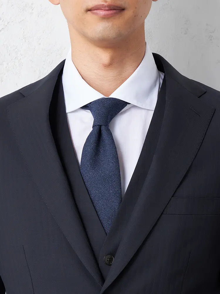 上品なネイビーがビジネスから式典まで清潔感を演出します。