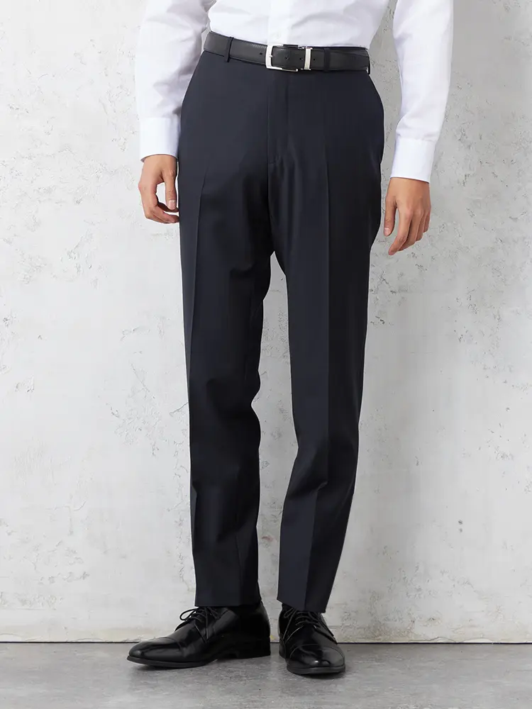 パンツの腰回りに生地の折り込みがなく、スッキリとしたシルエットを実現します。シンプルで洗練された印象を与え、すっきりとした着こなしが可能です。