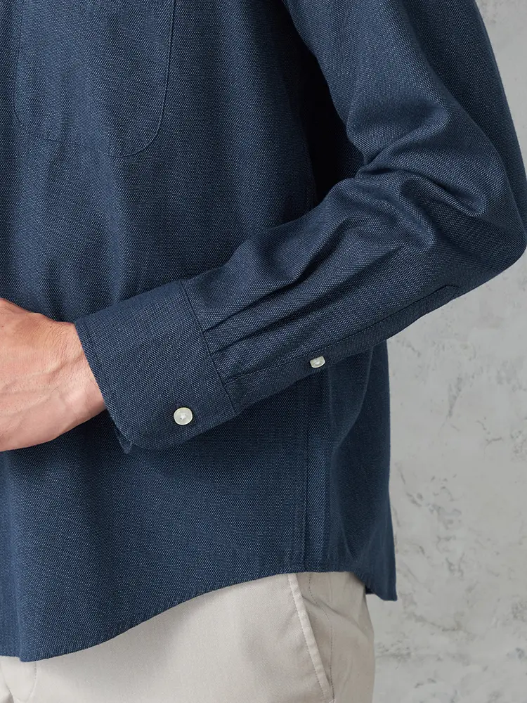 落ち着いたブルーが大人っぽさを演出する長袖シャツ。