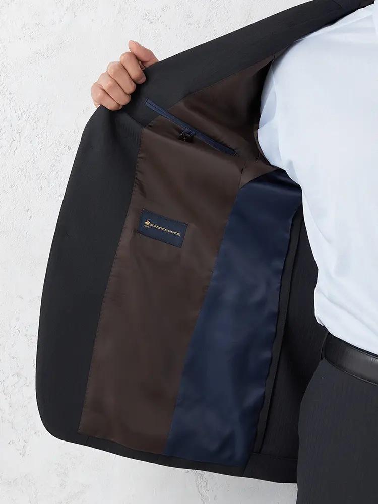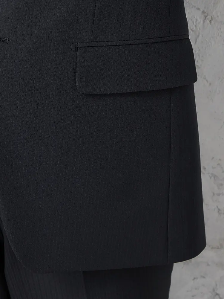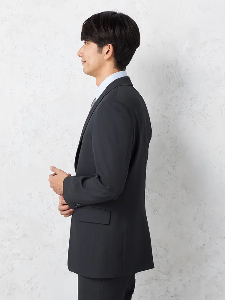 切り込みが1本のセンターベントデザインです。細身でスッキリとしたシルエットが特徴で、快適な着心地を提供します