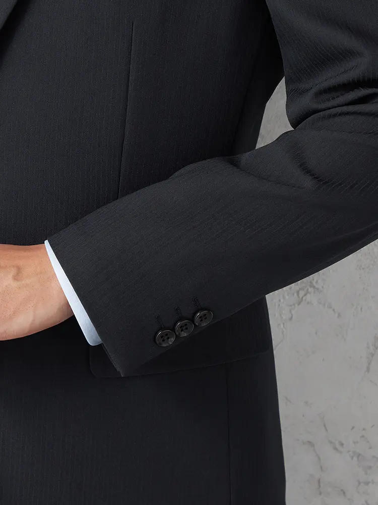 【即納】【WEB限定】スーツ2つボタンブラックシャドウストライプ上下ウォッシャブル3シーズン対応