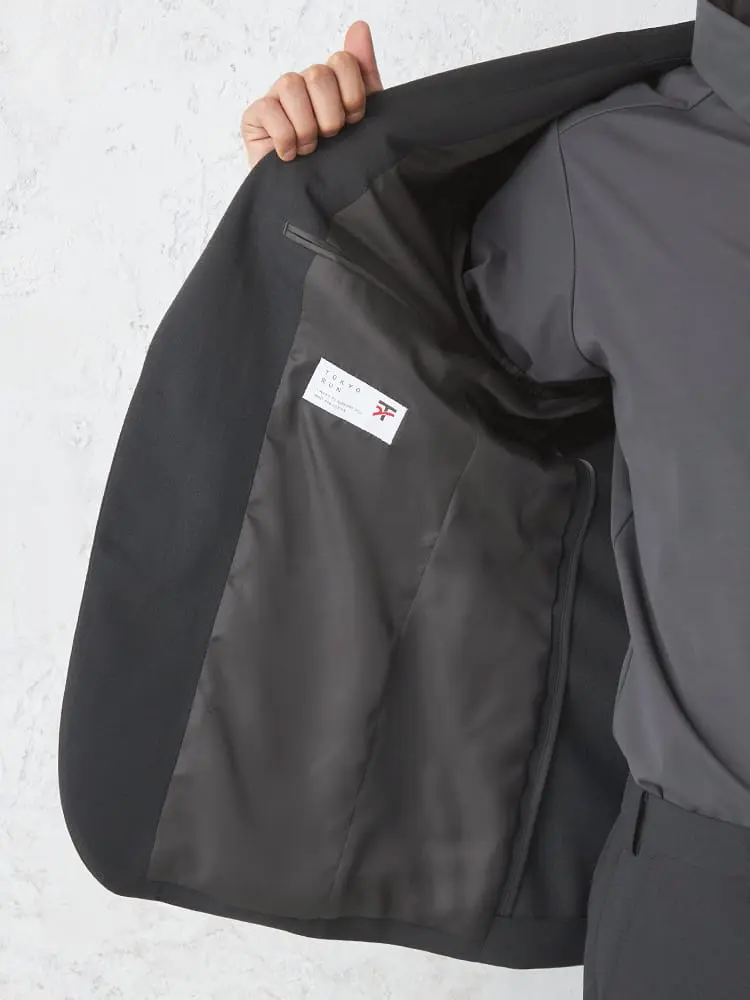 【TOKYO RUN】 セットアップ ブレスエフェクトジャケット 2つボタン ストレッチ ウォッシャブル 通気 通年(ブラック)