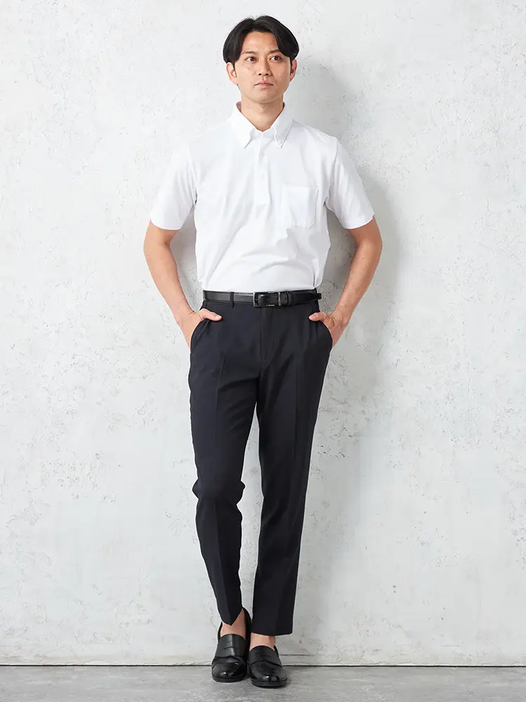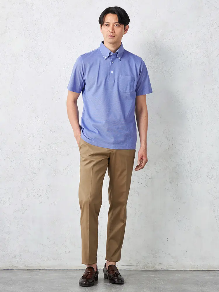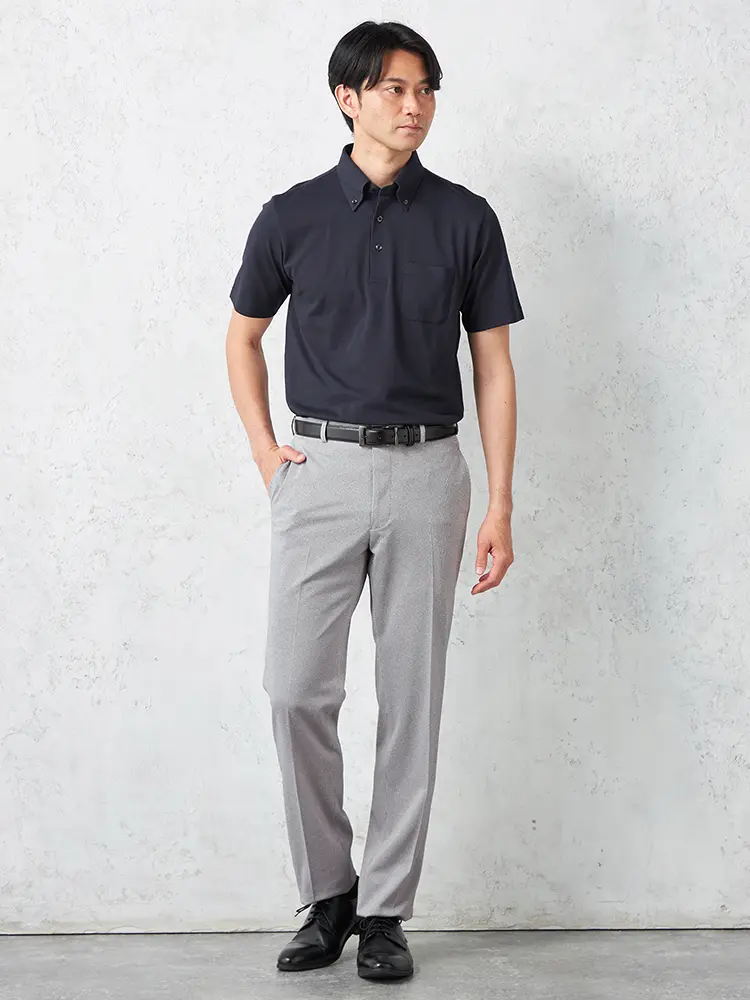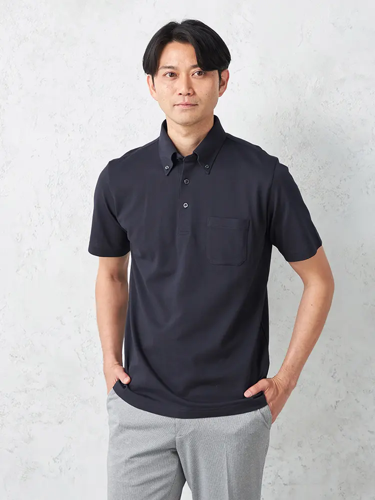オフィスカジュアルやクールビズに最適な半袖ポロシャツ。