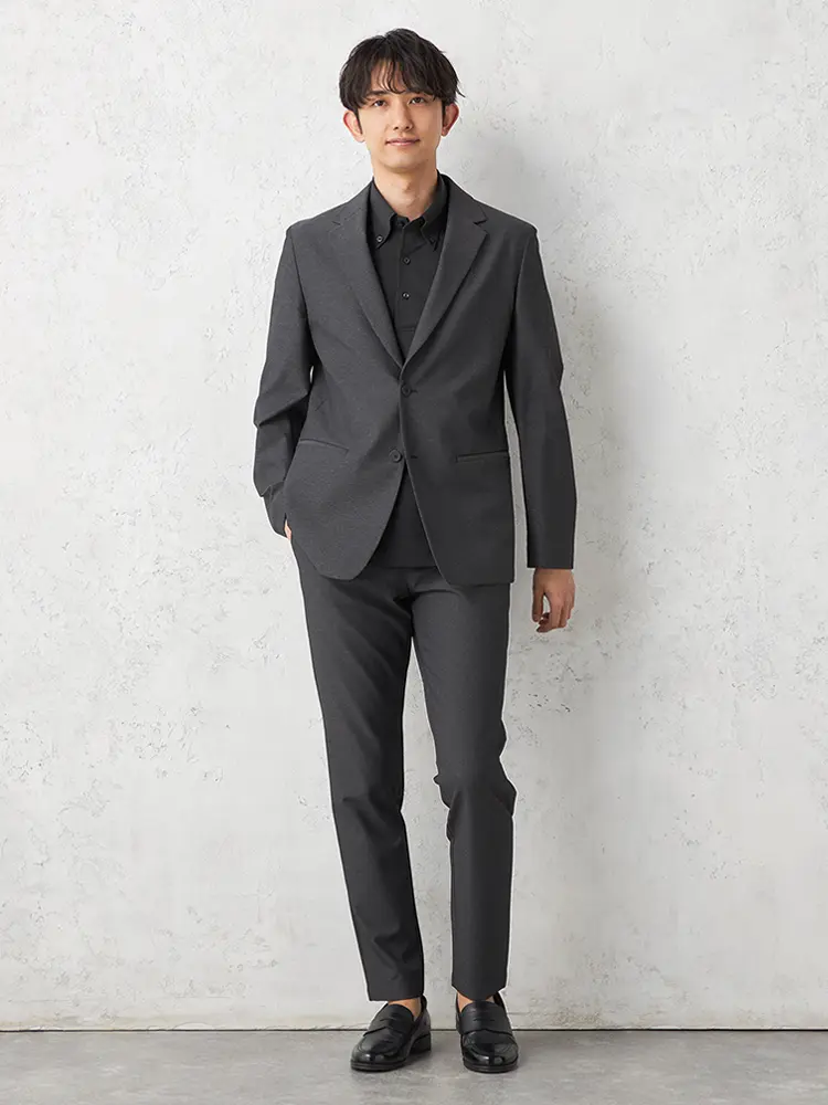 【TOKYO RUN】 セットアップ ブレスエフェクトジャケット 2つボタン ストレッチ ウォッシャブル 通気 通年