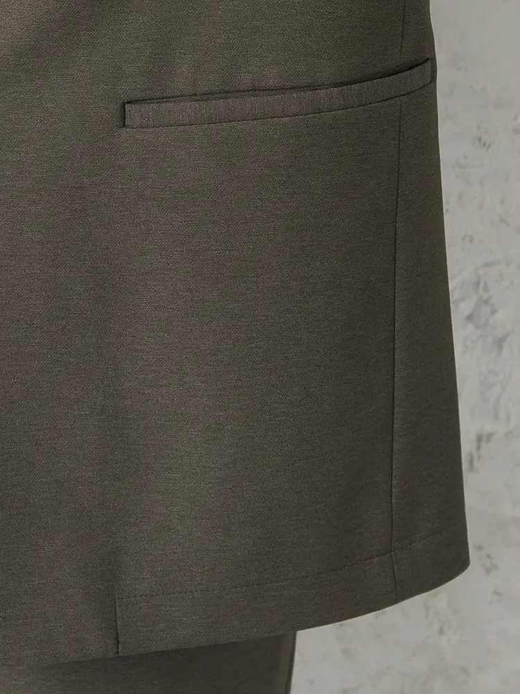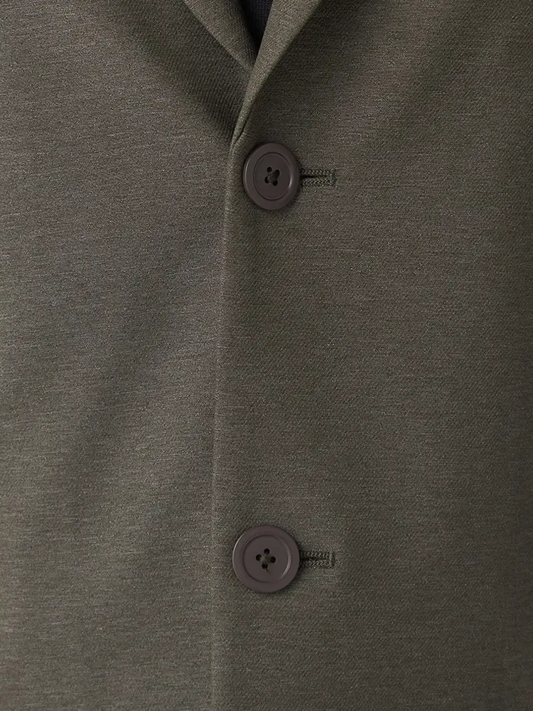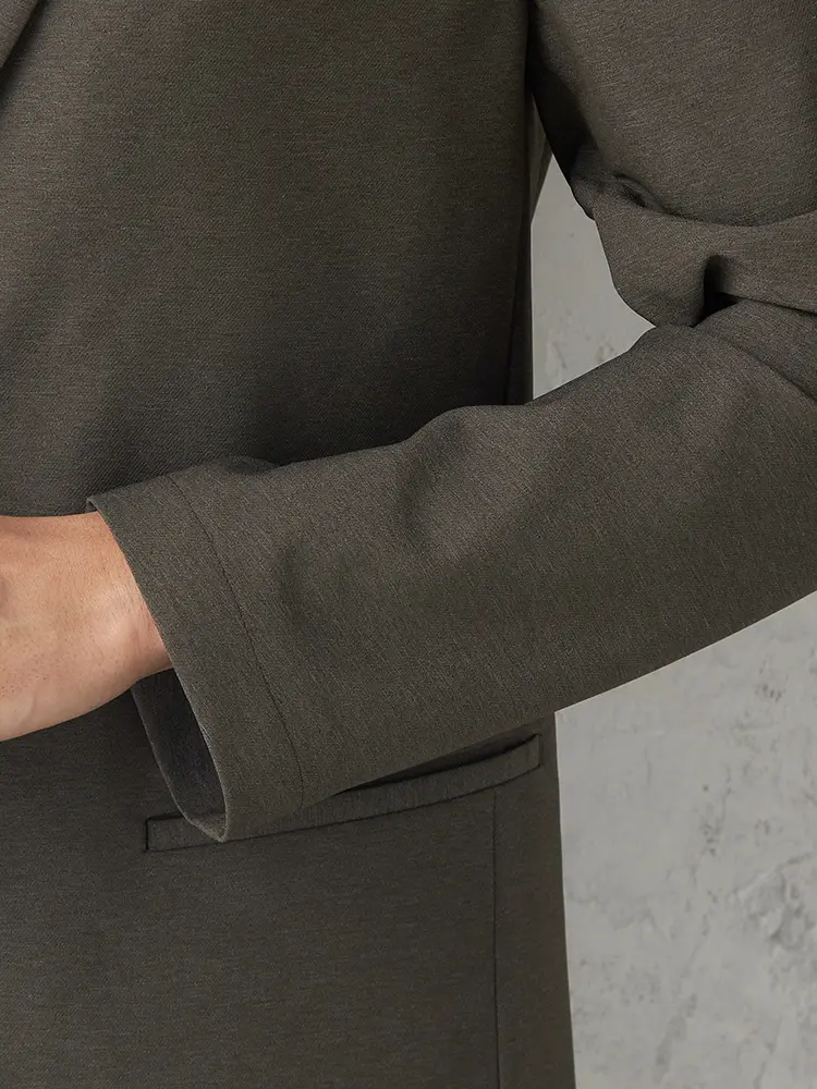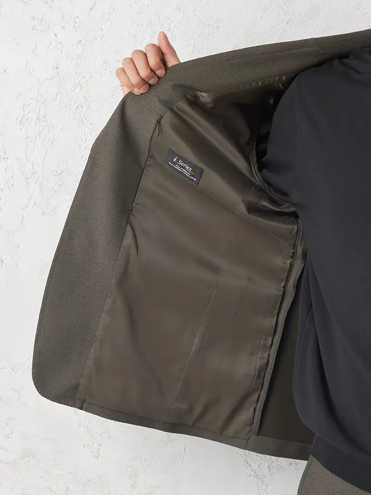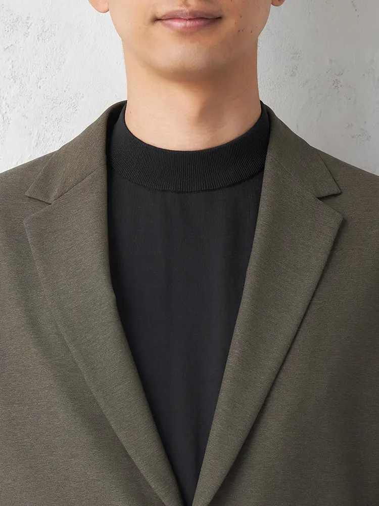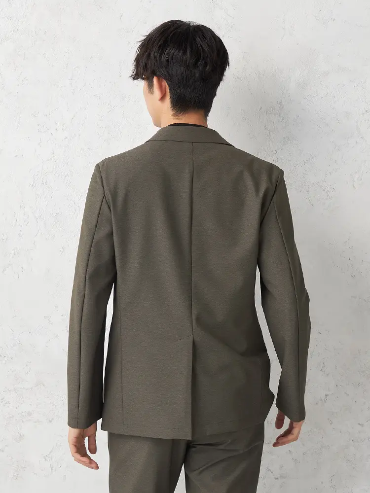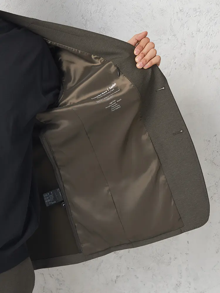 センターベントと袖口ボタンなしのミニマルな仕様で、背抜きのため夏も快適。