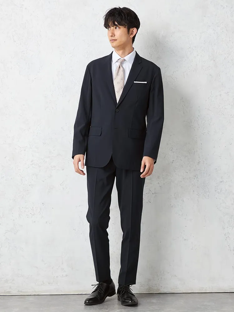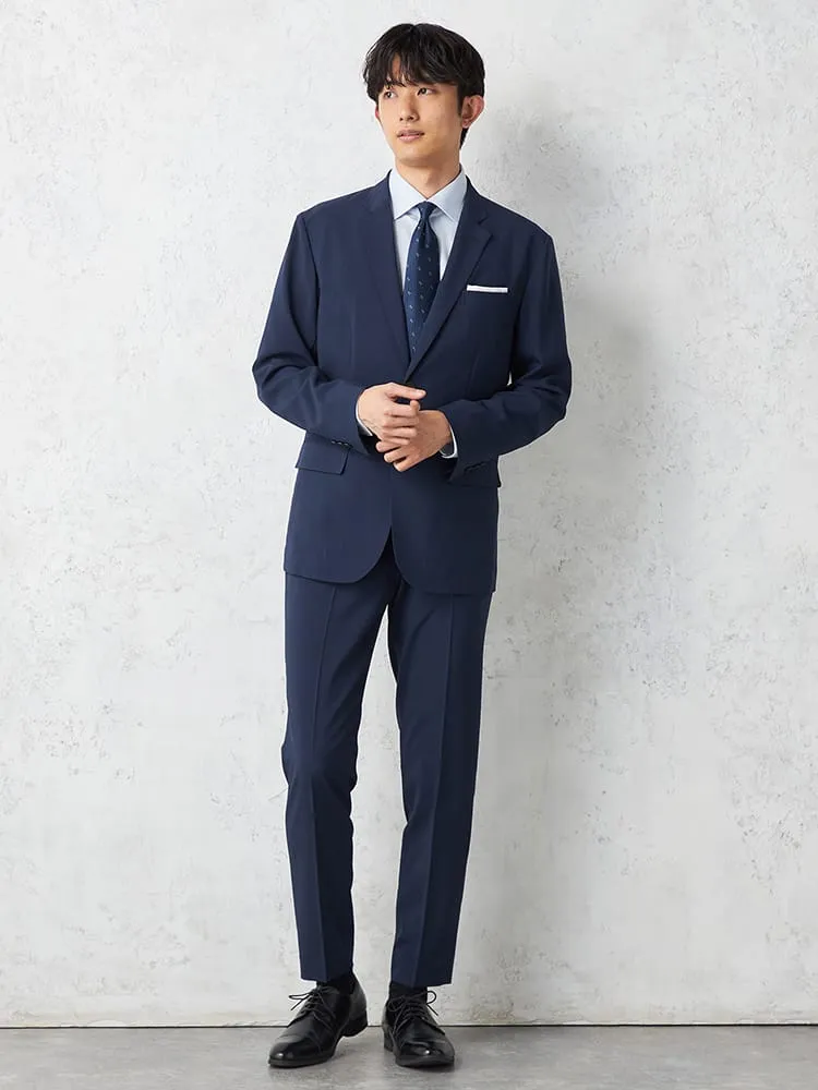 【AIR SUIT】裾上げ済み セットアップ スラックス パンツ ノータック 防シワ(イージーケア) ストレッチ 通年 吸水速乾 UVカット 春夏(ネイビー)