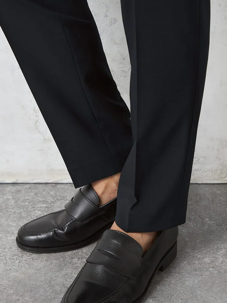 【イタリア製素材REDAFLEXO使用】パンツスラックスノータック無地S&MBLUELABEL