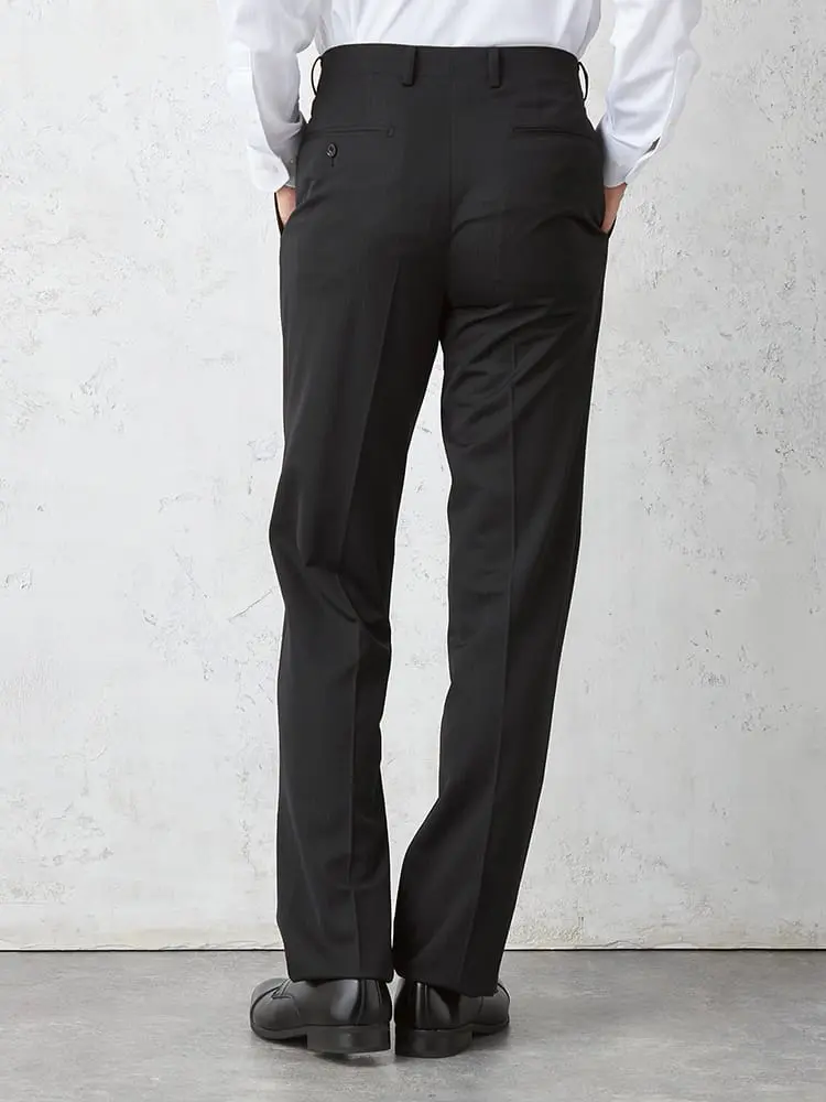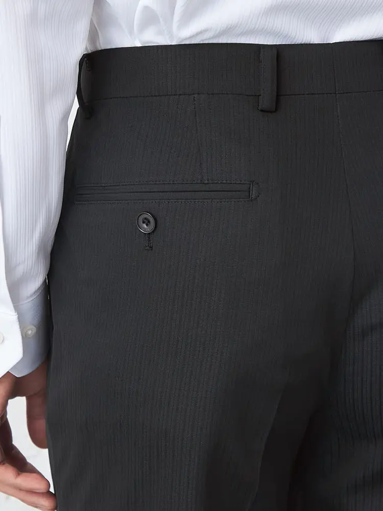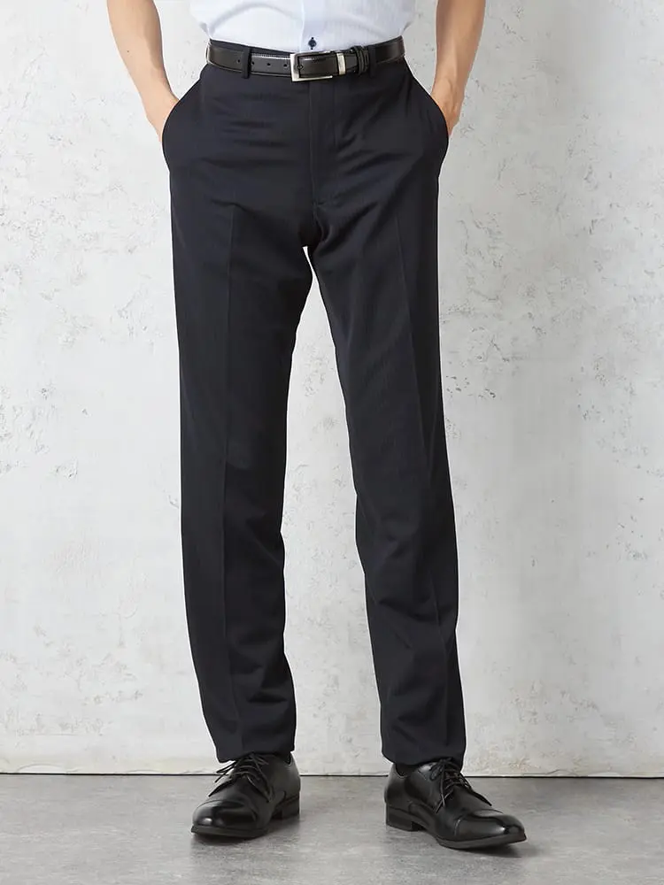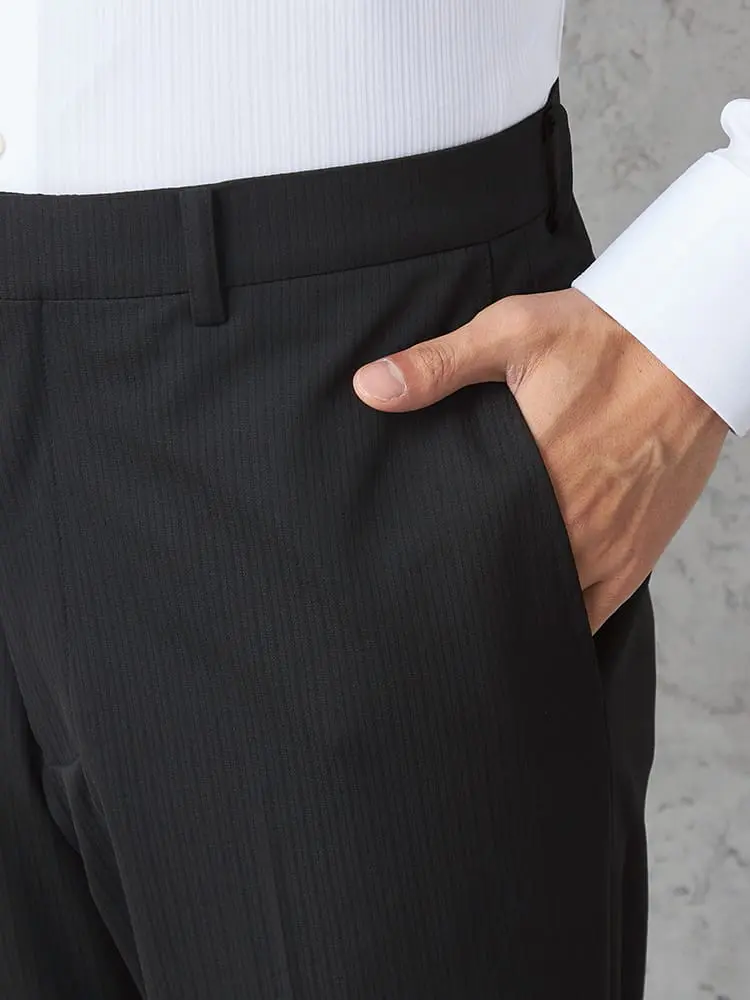 シャドウストライプ柄が都会的な印象を与える、スマートなノータックスラックスです。