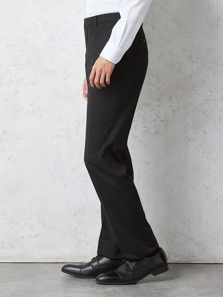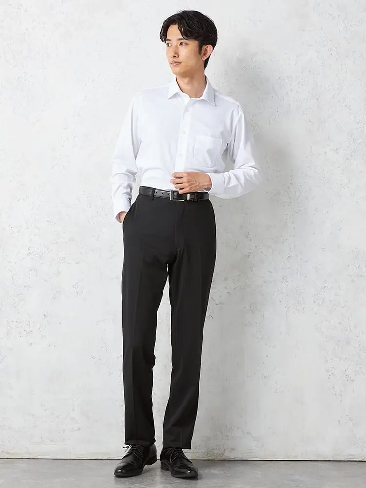 お腹周りがすっきり仕上がる細身のシルエットは、洗練されたアーバンルックに最適。